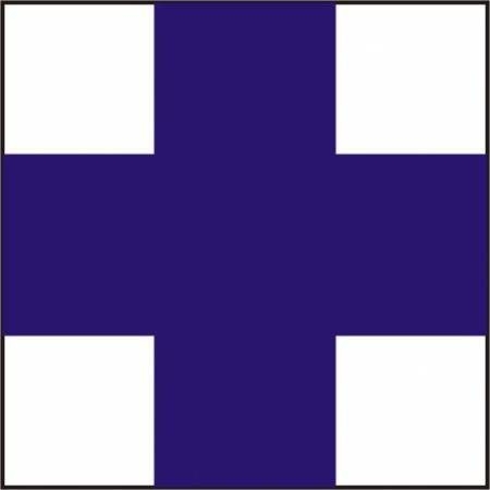b) crucea cu brate egale - pe fond alb - pentru marcarea traseelor de legatura;